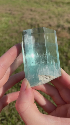An extremely clear, impressively bright blue Aquamarine crystal from Nyet-Bruk, Braldu Valley, Skardu District, Baltistan, Gilgit-Baltistan, Pakistan.