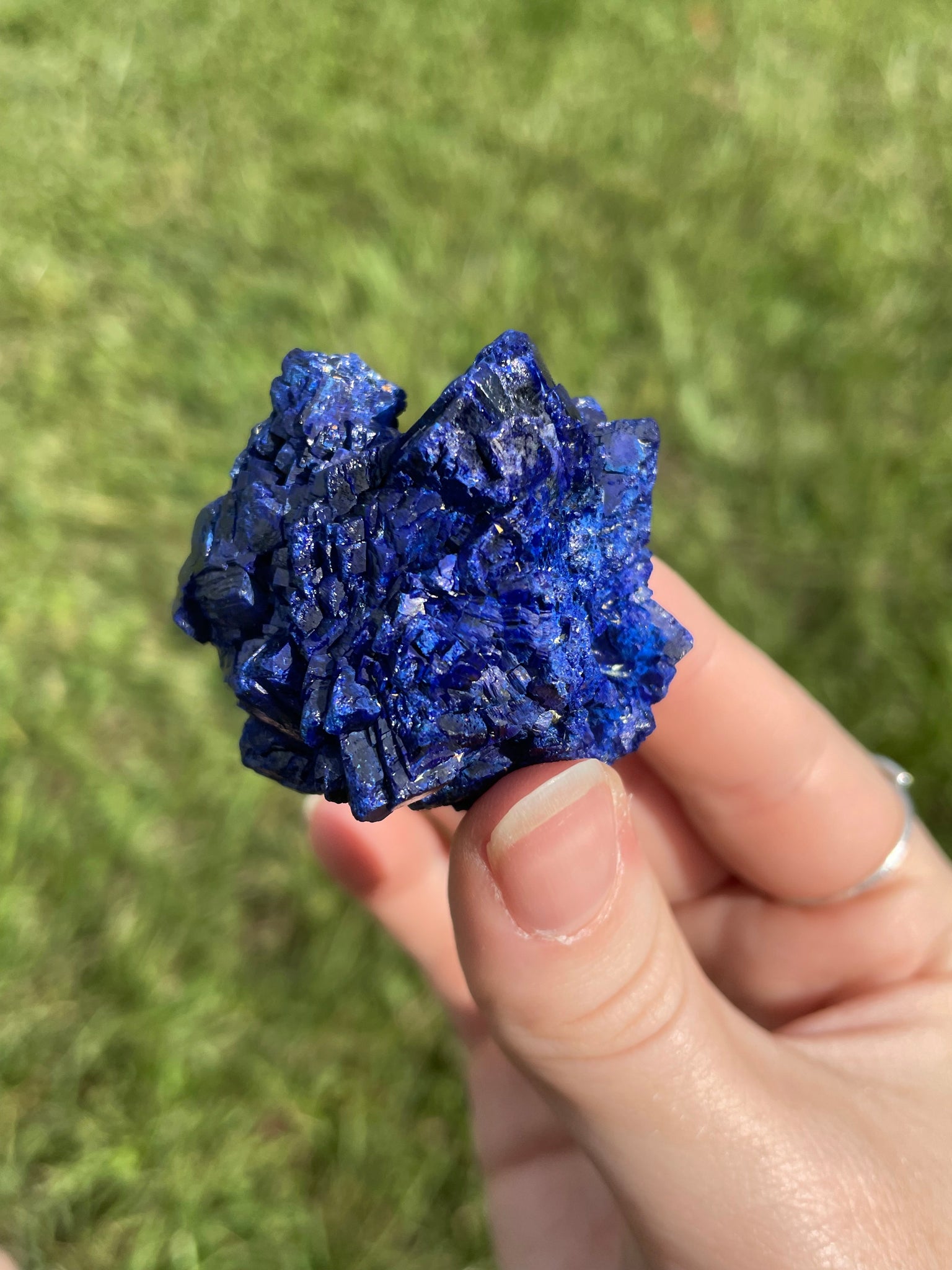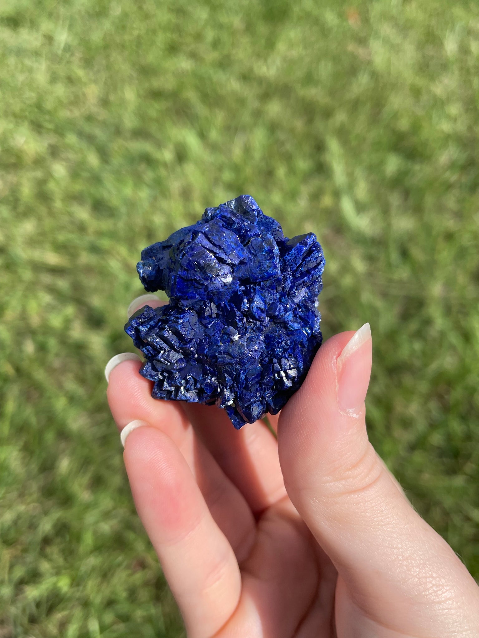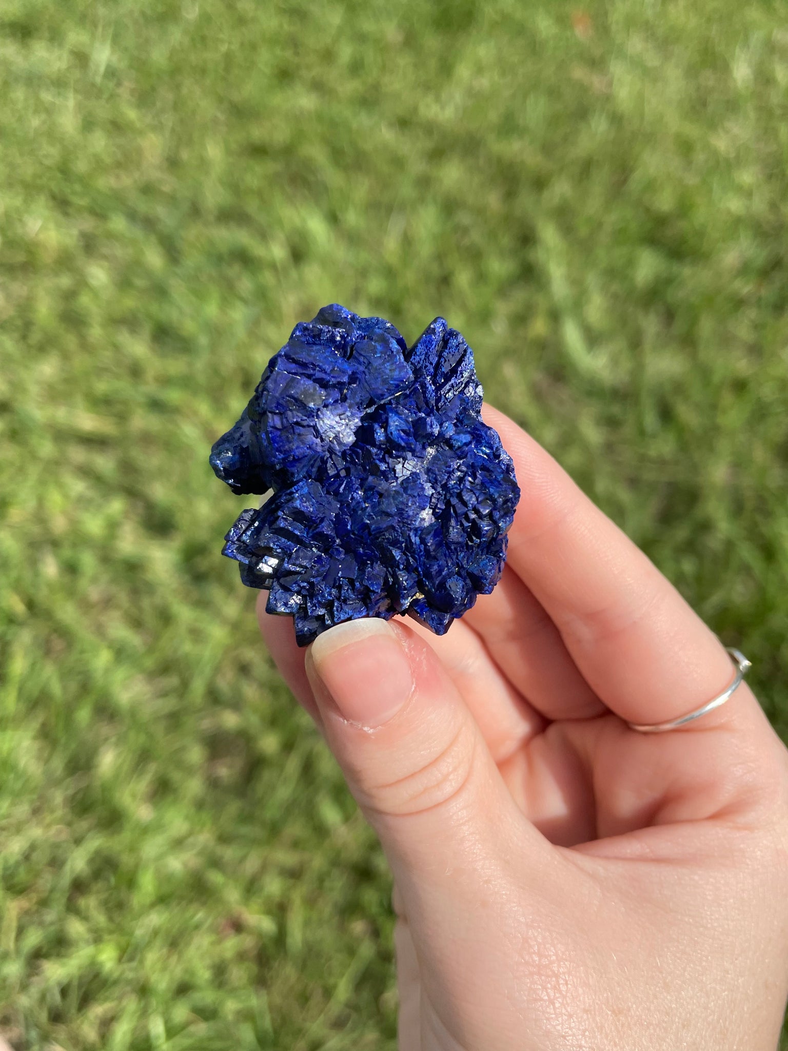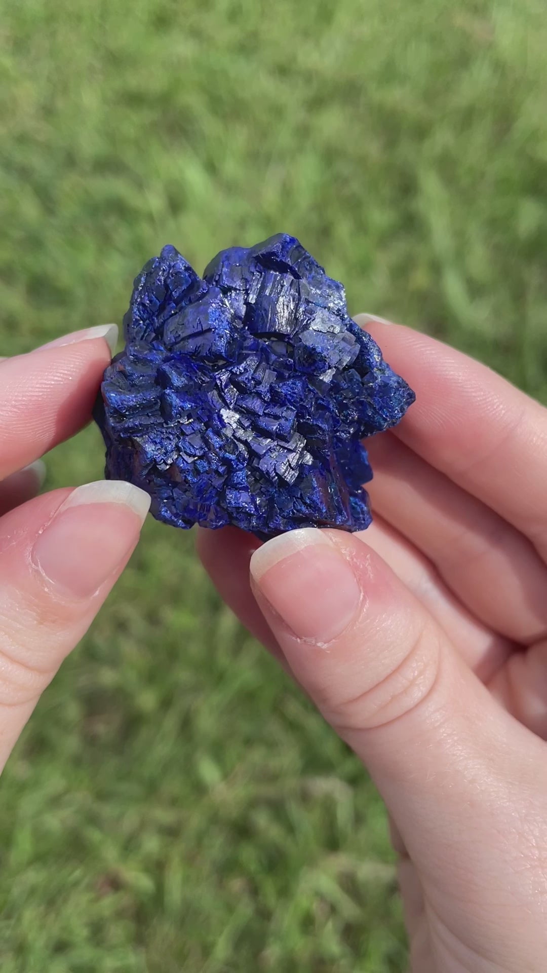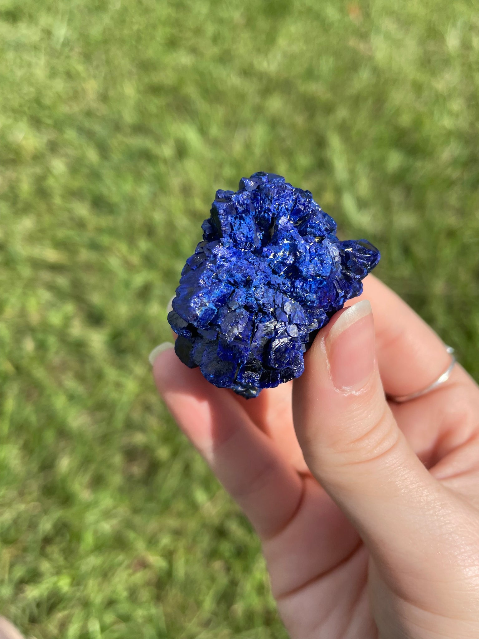 A bright blue Azurite rosette ball, from Shilu Mine, Yangchun County, Yangjiang Prefecture, Guangdong Province, China