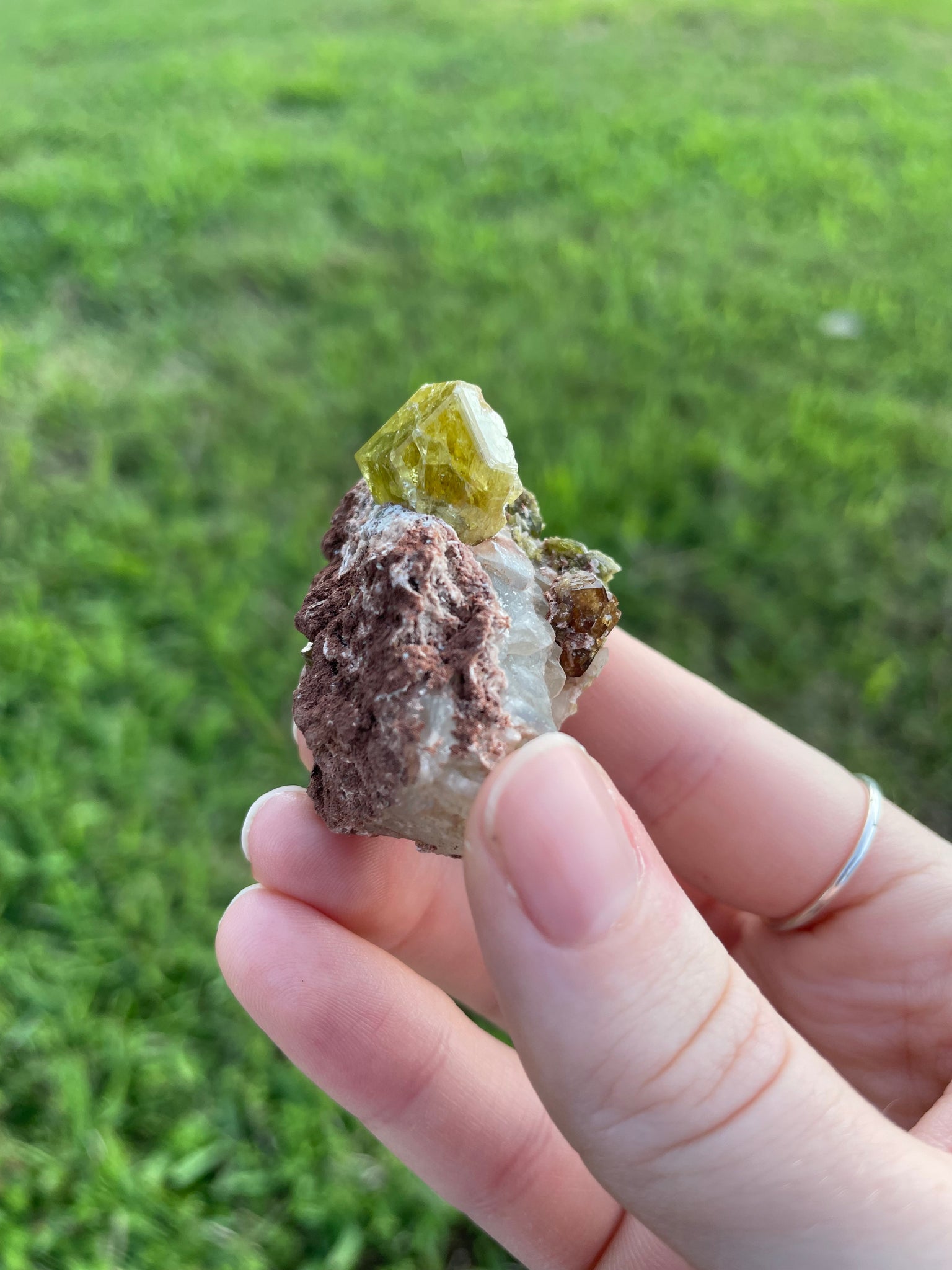 This is a yellow-green Topazolite cluster from Mun. de Las Vigas de Ramírez, Veracruz, Mexico. A lustrous, pear-hued Garnet from a relatively uncommon Garnet locality! From Mun. Las Vigas de Ramírez, Veracruz, Mexico.