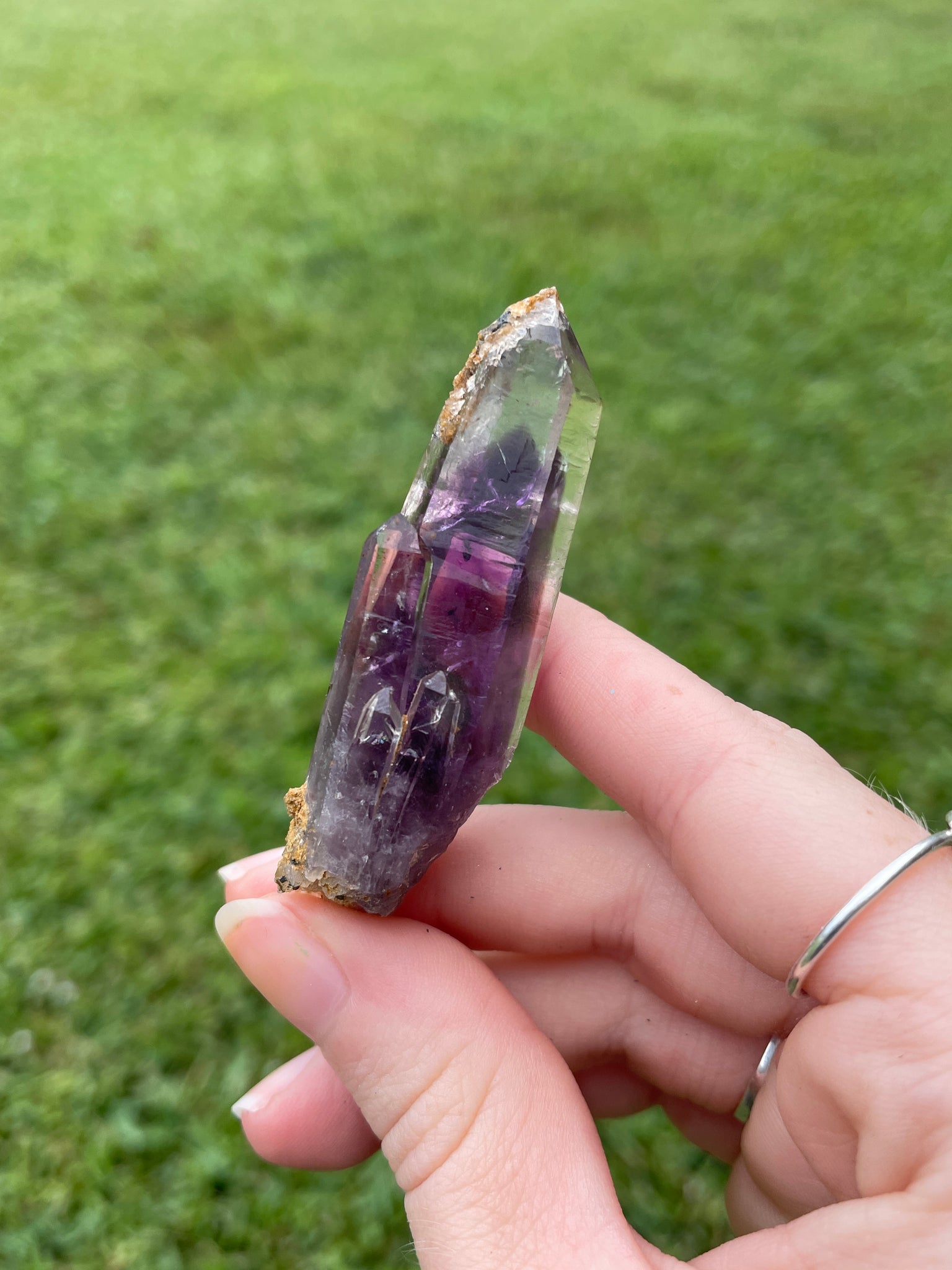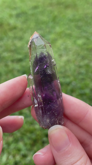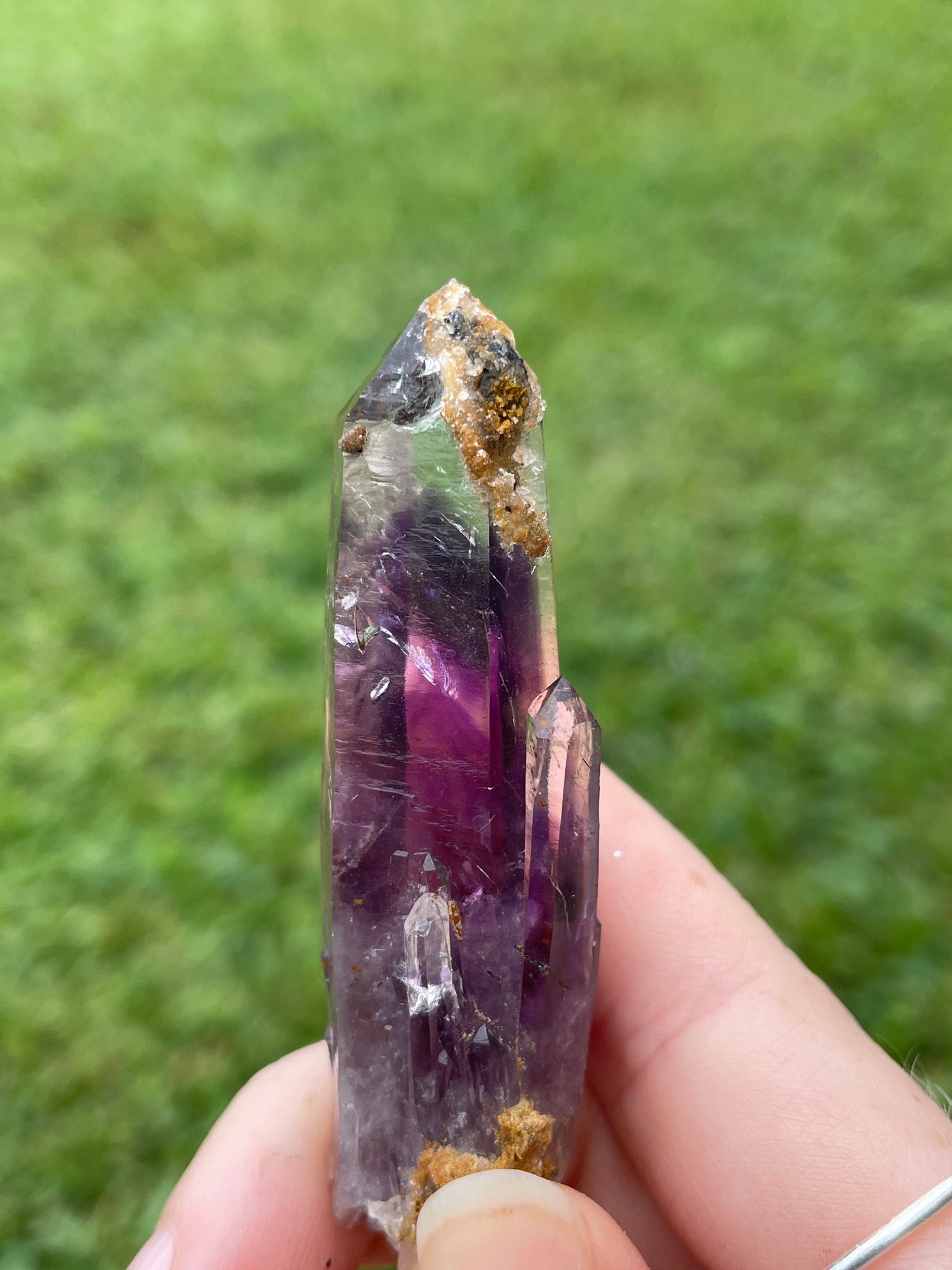 This Amethyst point features a deep, saturated purple phantom and a clear termination. From Guerrero, Mexico.