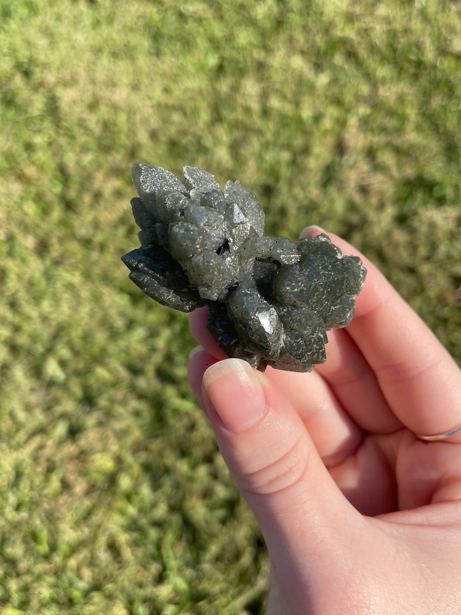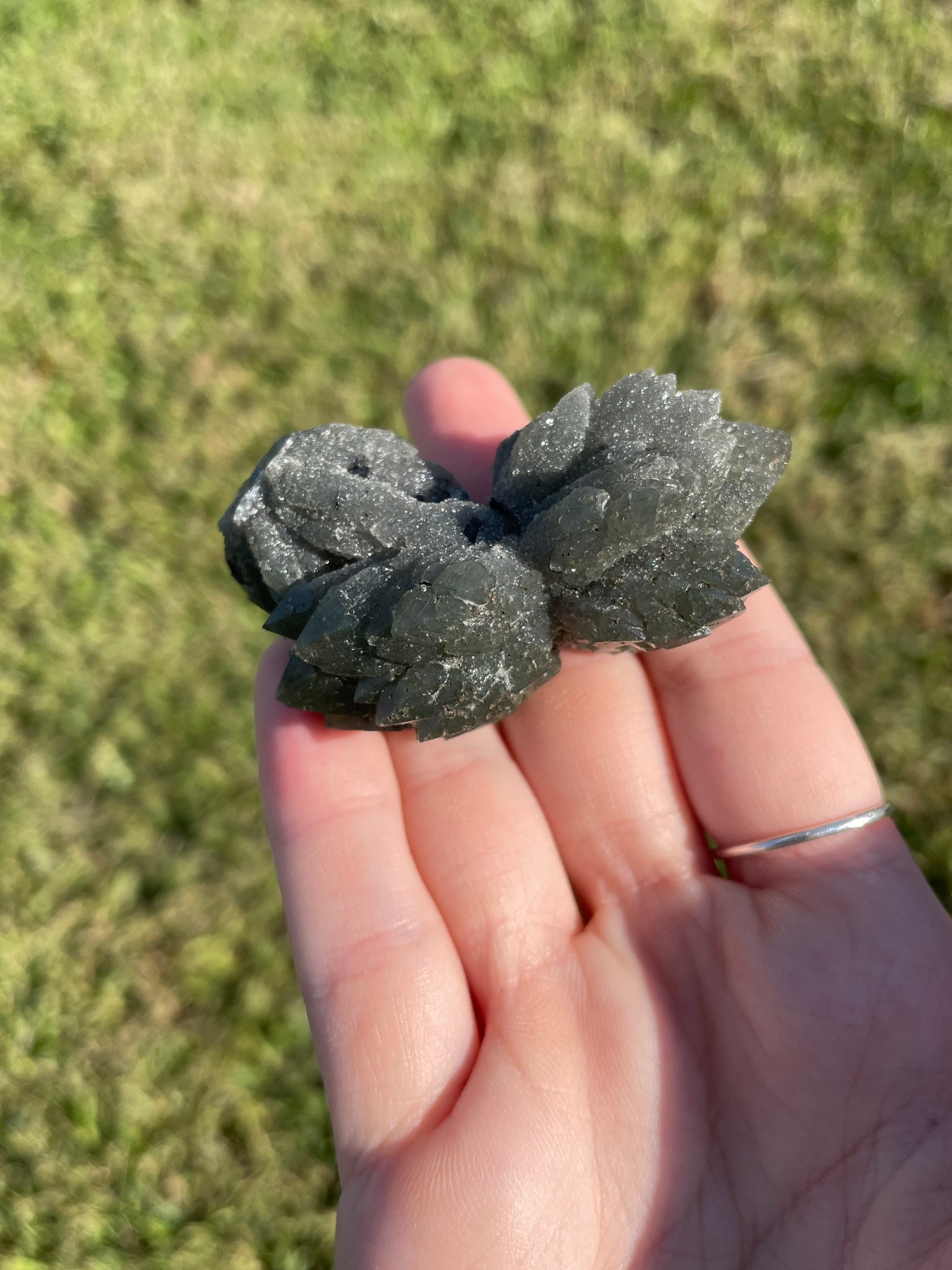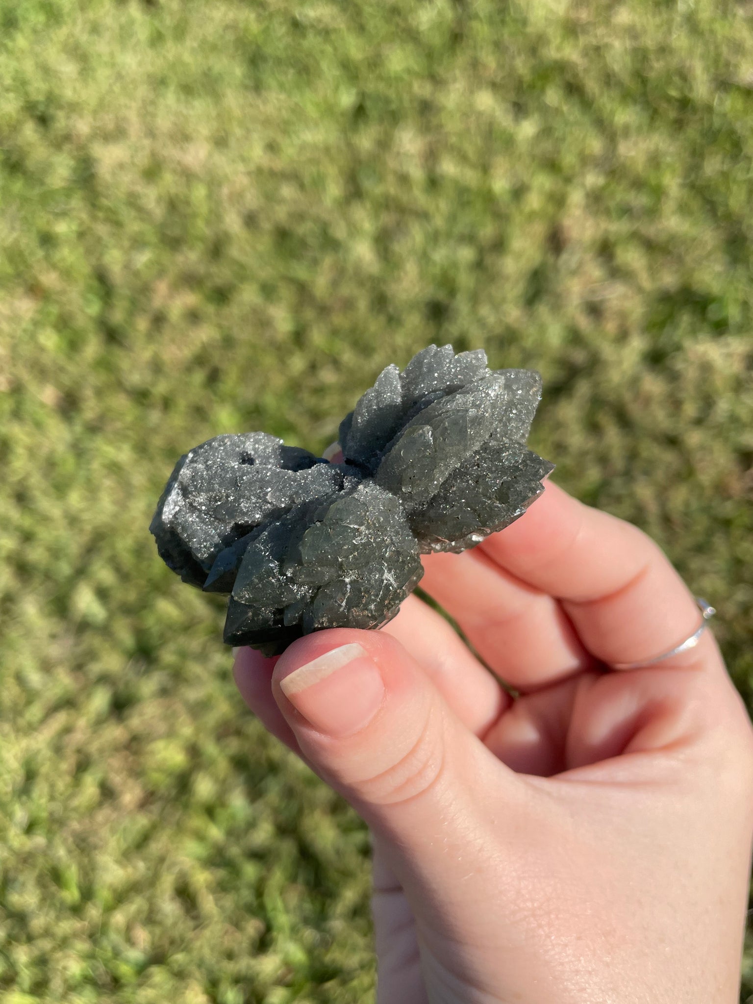 A small, glittering green Quartz bowtie, from Huanggang Mine, Inner Mongolia Autonomous Region, China.