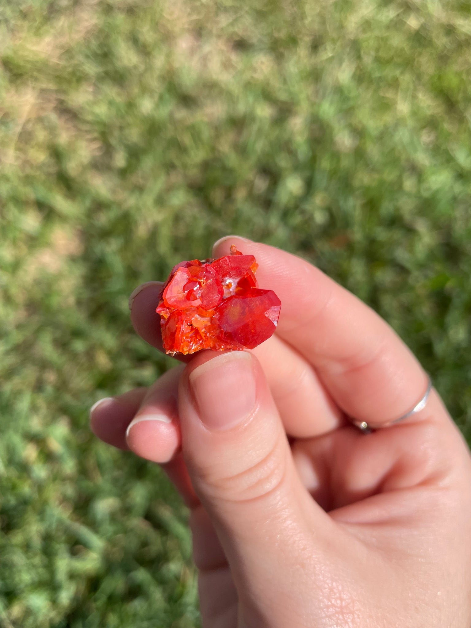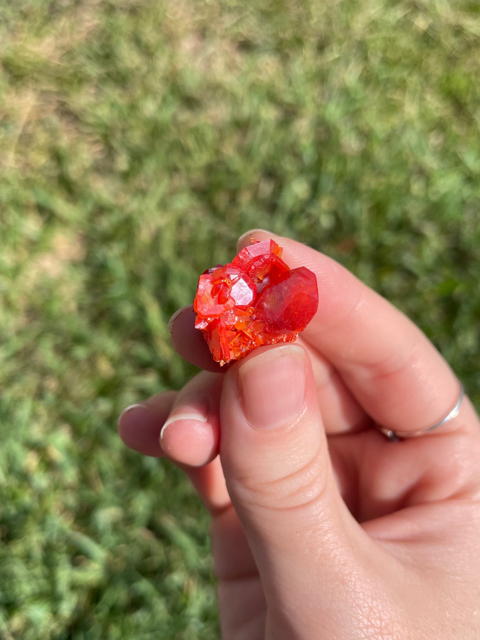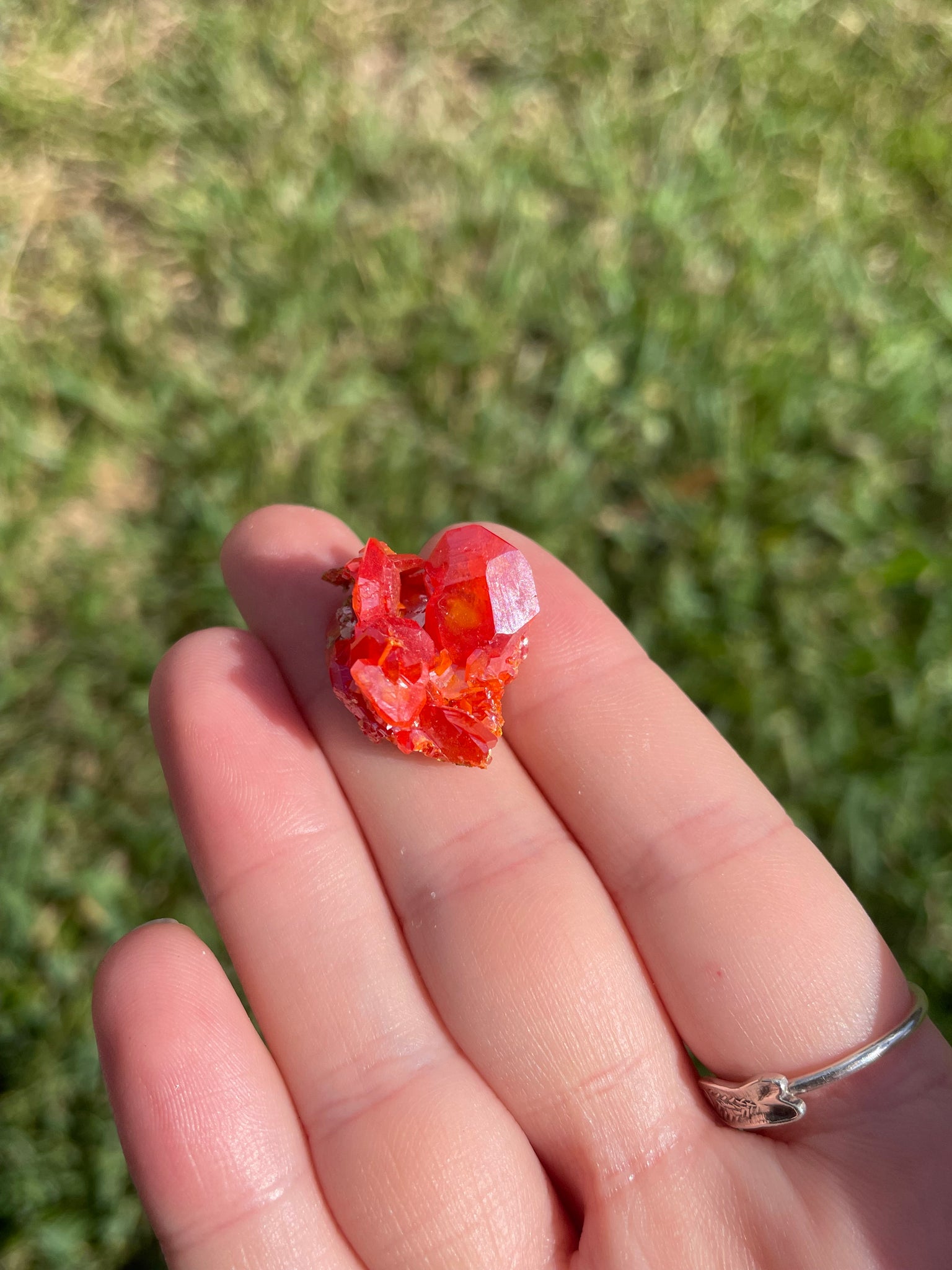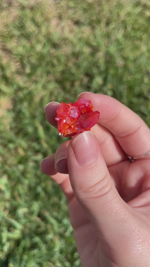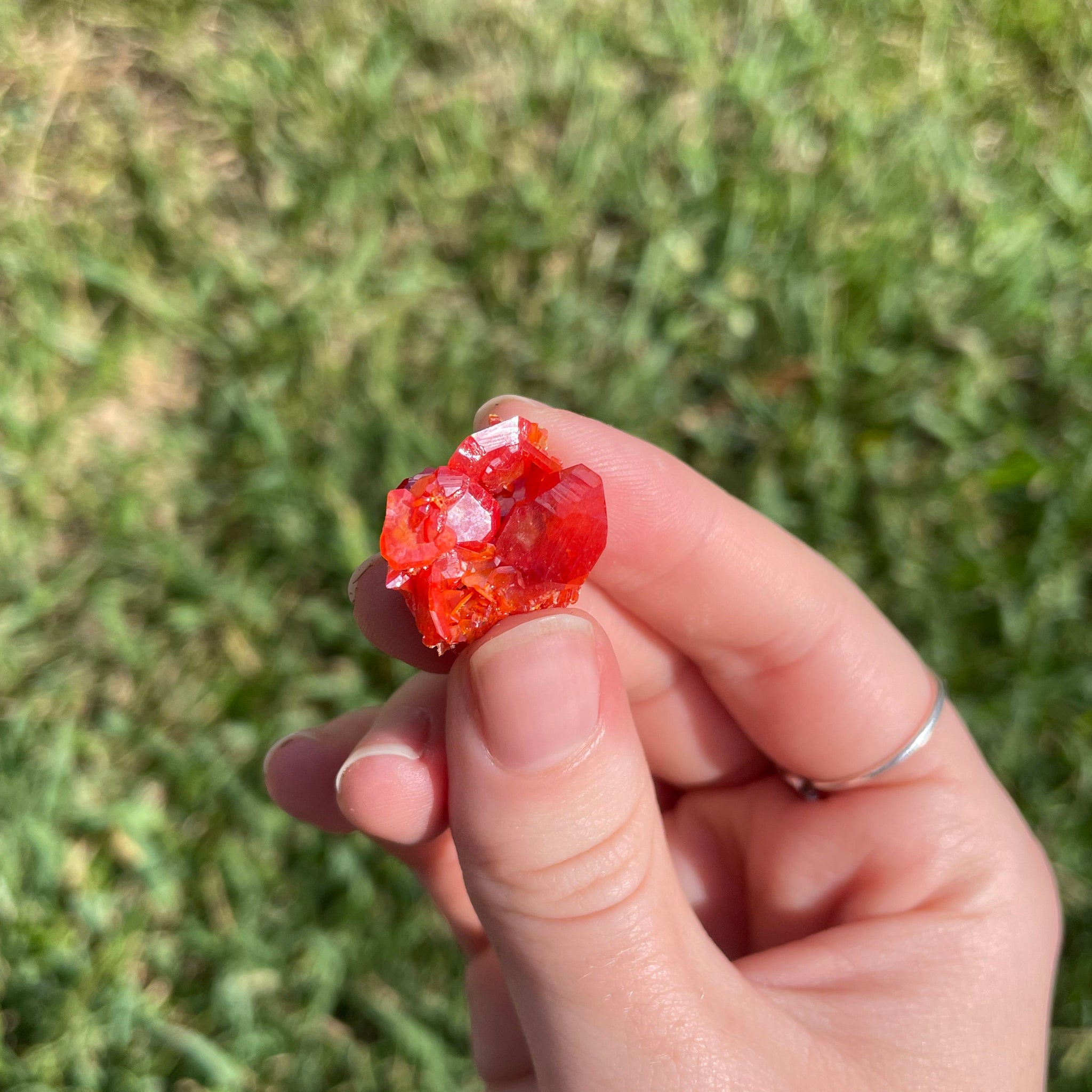 A small cluster of well-crystallized bright red-orange Wulfenite crystals, from Chah Kharboze Mine, Chah Kharboze, Anarak District, Nain County, Isfahan Province, Iran.